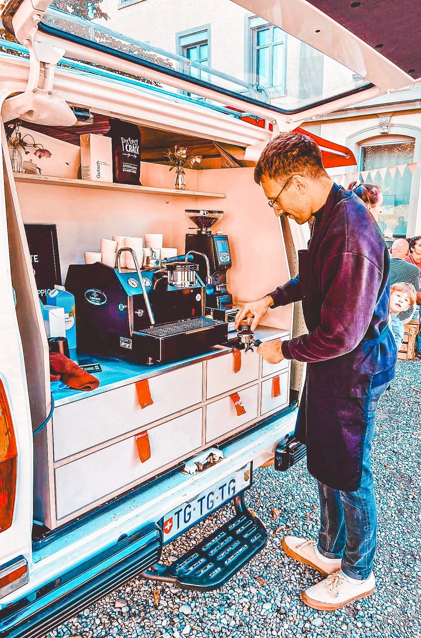 Dabei präsentieren wir ein wechselndes Sortiment, das lokale Köstlichkeiten umfasst: Kaffeesorten, die in Frauenfeld geröstet werden, Biere aus hiesigen Brauereien und Weine, die im Thurgau gekeltert werden.