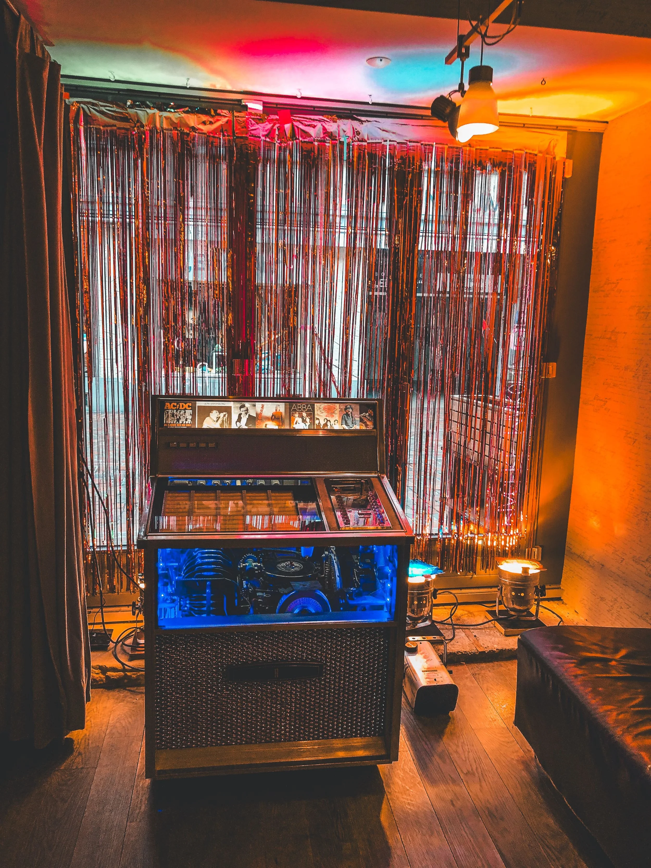 Mit vollem Einsatz stürzten wir uns in die Bächtleisnacht und machten aus unserer Kaffee-Disco-Bar eine Disco-Bar. Statt unserer Kaffeemaschine stand nun eine Jukebox im Zentrum der Aufmerksamkeit :)